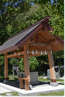 一、 右手で柄杓(ひしゃく)を持ち、水を汲んで左手にかけ左手を清めます。